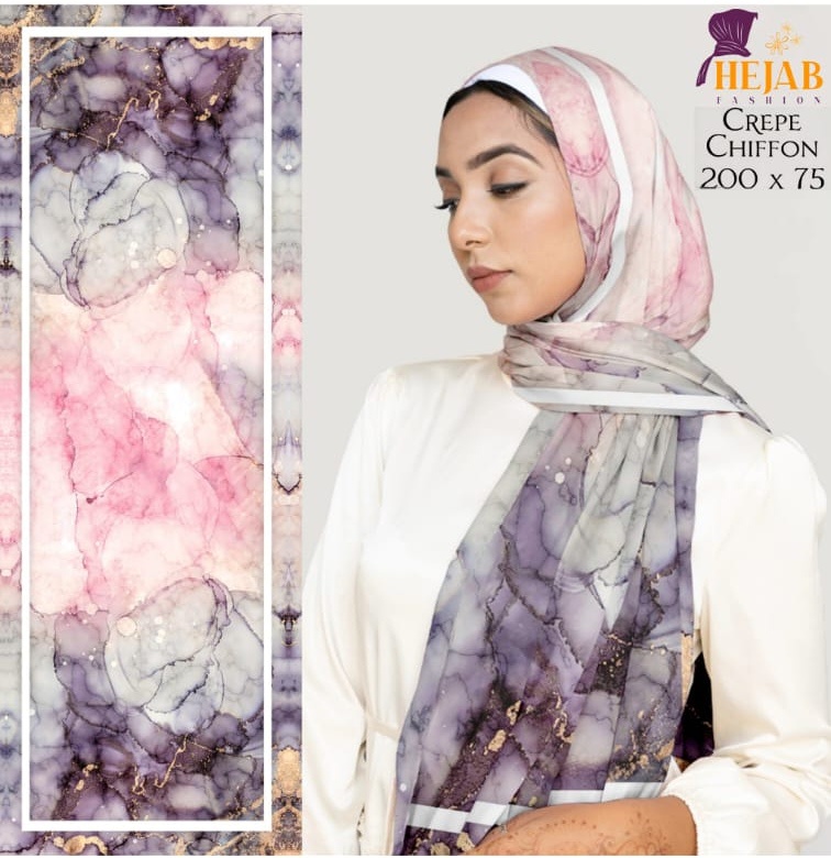 طرحه مشجره شيفون كريب ديجيتال ناعم وثابت مقاس مترين ف ٧٥ سم