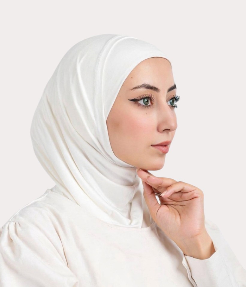 حجاب سوري قطعتين قطن ليكرا اوف وايت